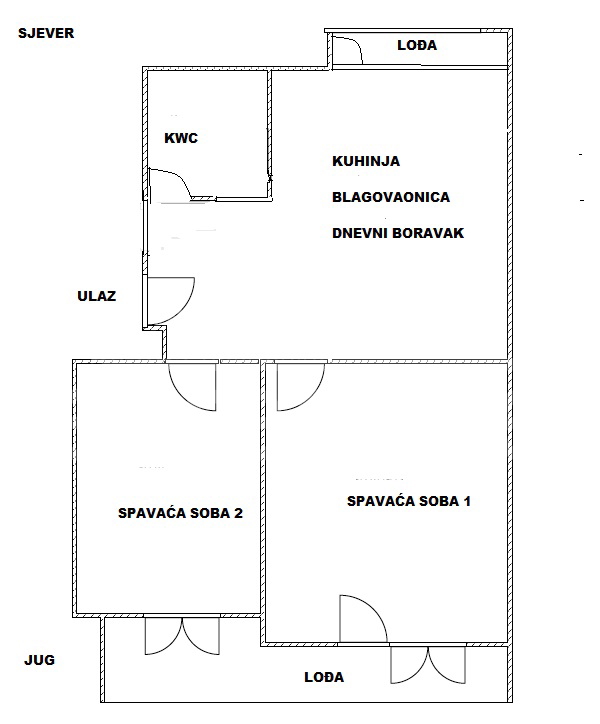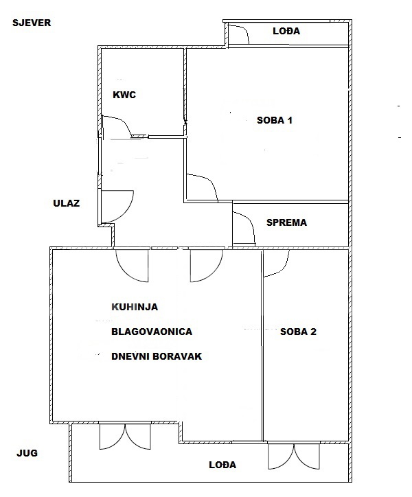 Die Wohnung befindet sich im 1. Stock, in der Mitte des Gebäudes (alte, solide Bauweise) in Split mit 3 Eingängen, hat eine Fläche von 63,50 m2 und besteht aus zwei Zimmern, einem Wohnzimmer und einer kleinen Küche (ursprünglich Loggia), einem kleinen Abstellraum, Badezimmer, separatem WC, Flur und Balkon/Terrasse + Holzlager. Es gibt keinen Aufzug!