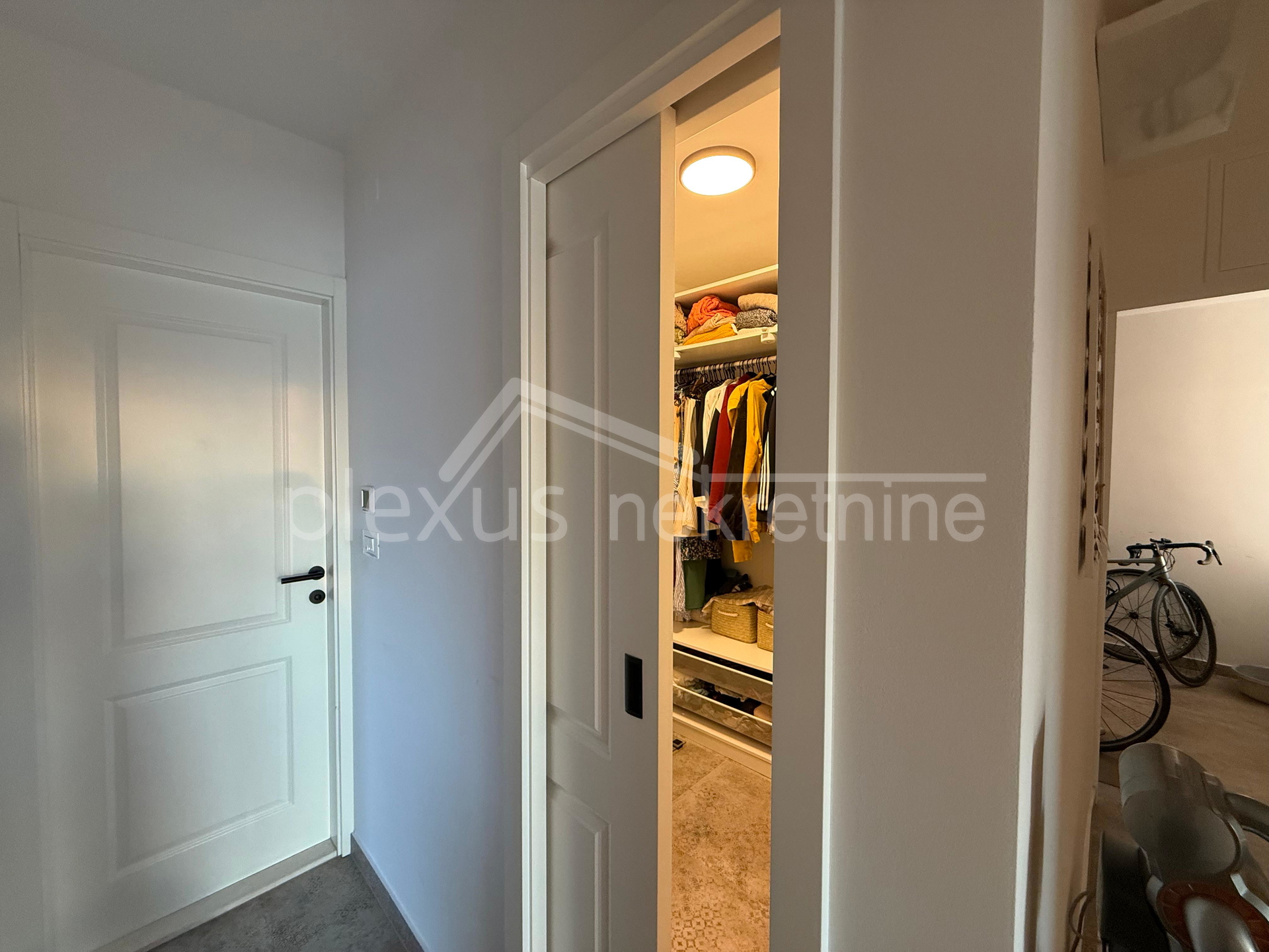 Dodatne pogodnosti uključuju walk in ormar kao i veliki broj ormara u predsoblju koji osiguravaju dovoljno prostora kako bi prostor u sobama bio slobodniji. Dva dizala osiguravaju lakši pristup. Za ugodnu klimu u stanu brinu se tri klima uređaja kao i podno grijanje u kuhinji, blagovaonici i kupaonici, a optička infrastruktura osigurava brz i stabilan internet. Stan posjeduje energetski certifikat A, što jamči energetsku učinkovitost. U zgradi je planirana energetska obnova 2027 godine što uključuje postavljanje nove termofasade kao i ugradnju solarnih panela koji će prozvoditi električnu energiju potrebnu za sve zajedničke dijelove zgrade.