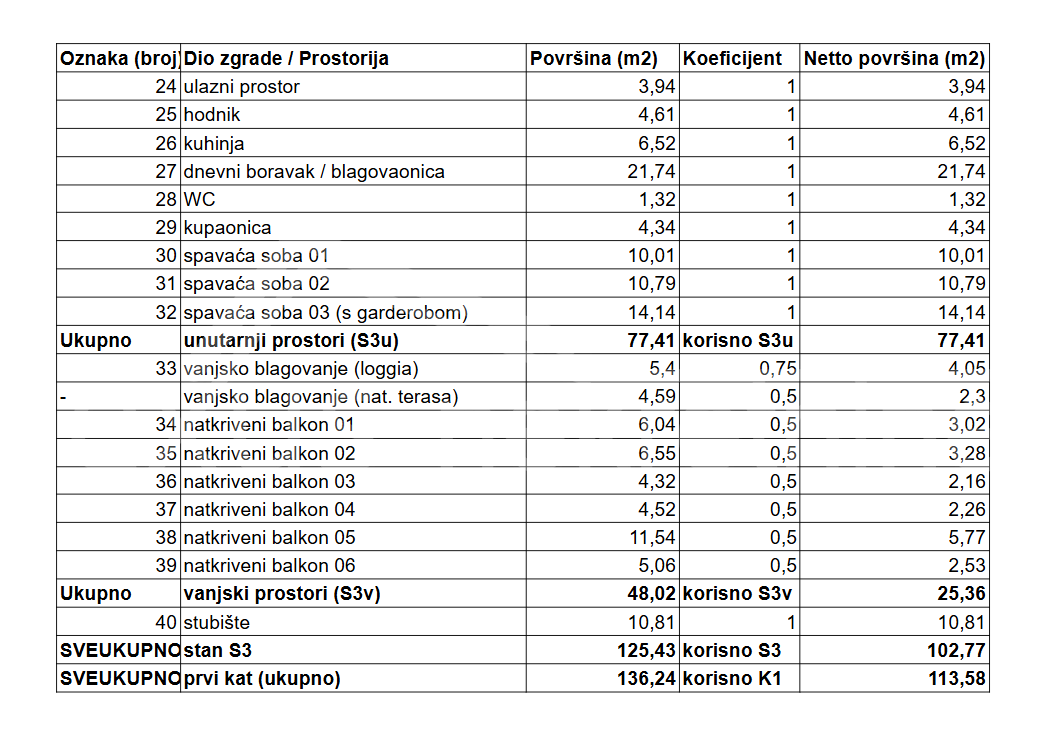 Prvo nadstropje: stanovanje S-3, J-I-S-Z, 3 prostori, 2 kopalnici, 125,43 m2 = 840.000 € z vključenim parkirnim mestom v garaži (25.000 €).